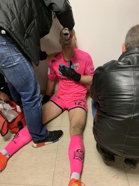 Χαρακτηριστικά είναι τα πλάνα της COSMOTE TV που σε ζωντανή μετάδοση κατέγραψε τον τερματοφύλακα της ομάδας του Βόλου να αποχωρεί υποβασταζόμενος με πρόβλημα στην όραση.