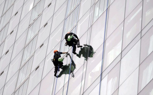 Δουλειά με… θέα στον κίνδυνο! Καθάρισμα τζαμιών σε ύψος 150 μέτρων!