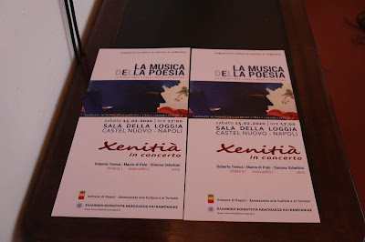 Το ναπολετάνικο τρίο ΞΕΝΙΤΙΆ έκλεισε τους εορτασμούς της Ημέρας Ελληνικής Γλώσσας 2020 και την Εβδομάδα Ελληνικού Πολιτισμού (9-15 Φεβρουαρίου) με μια μουσική εκδήλωση στο εμβληματικό κάστρο της Νάπολης Maschio Angioino, που πραγματοποιήθηκε το Σάββατο 15 Φεβρουαρίου 2020.