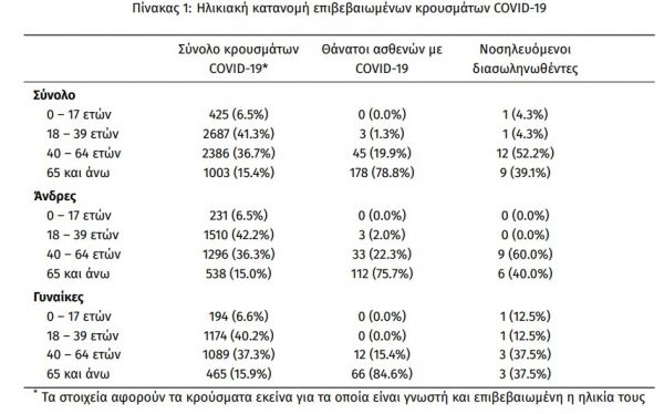 Η διάμεση ηλικία των θανόντων συμπολιτών μας ήταν τα 77 έτη και το 95.6% είχε κάποιο υποκείμενο νόσημα ή/και ηλικία 70 ετών και άνω.