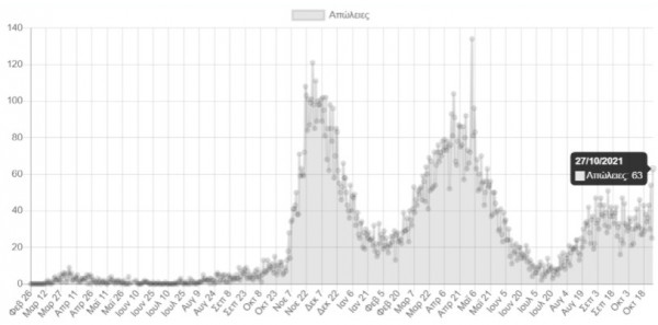 Σύμφωνα με τα στοιχεία του ΕΟΔΥ, οι ημερήσιοι θάνατοι από κοροναϊό στη χώρα ανήλθαν στο υψηλότερο επίπεδο των τελευταίων 5 μηνών.