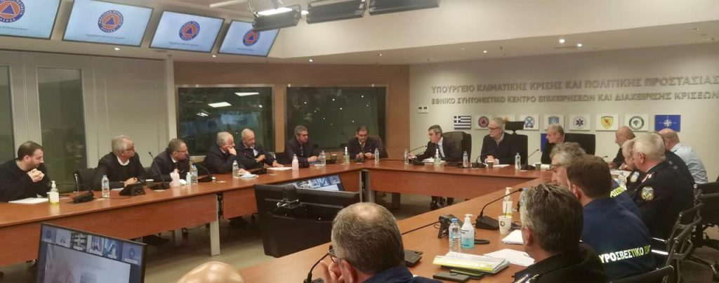 Αποφασίστηκε, επίσης, να ενεργοποιηθεί το 112 για την αποστολή προειδοποιητικών μηνυμάτων σε συγκεκριμένες περιοχές ανάλογα με την εξέλιξη των φαινομένων.