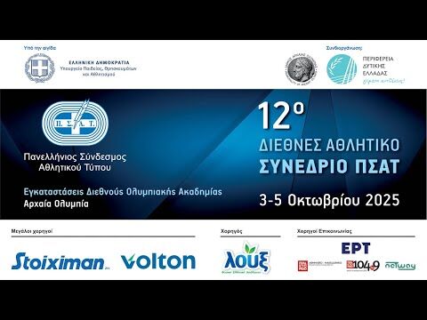 Αρχίζει σήμερα το απόγευμα, Παρασκευή 3 Οκτωβρίου, το 12ο Διεθνές Αθλητικό Συνέδριο, που διοργανώνει ο Πανελλήνιος Σύνδεσμος Αθλητικού Τύπου, σε συνεργασία με τον Δήμο Αρχαίας Ολυμπίας και την Περιφέρεια Δυτικής Ελλάδας.