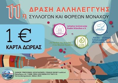 Το Ένα Ευρώ που μετράει: Κυκλοφορεί η Κάρτα Δωρεάς για την 11η Δράση Αλληλεγγύης των ελληνικών συλλόγων και φορέων Μονάχου 2025.