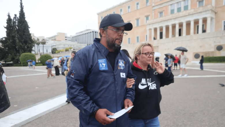 Ο Πάνος Ρούτσι με την σύζυγό του Μιρέλλα στο Σύνταγμα / (ΤΑΤΙΑΝΑ ΜΠΟΛΑΡΗ/EUROKINISSI)