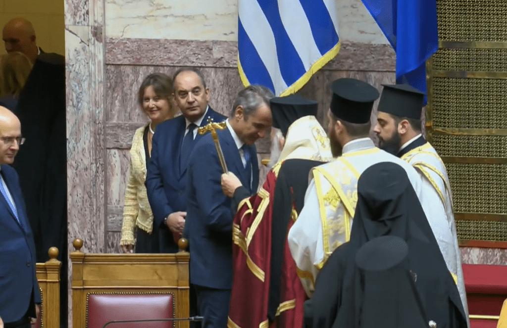 Ο Κυριάκος Μητσοτάκης παρευρέθηκε στη Βουλή για την τελετή, σηματοδοτώντας την επίσημη έναρξη των κοινοβουλευτικών εργασιών.