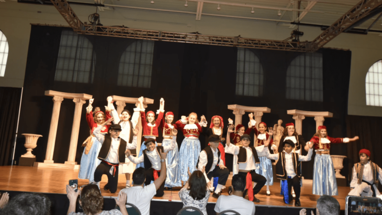 Το γυμναστήριο μετατράπηκε σε θεατρική αίθουσα όπου πάνω από 140 ελληνόπαιδα συμμετείχαν σε 8 παιδικά τμήματα και 5 με παιδιά του Γυμνασίου και Λυκείου, που χόρεψαν ελληνικούς παραδοσιακούς χορούς φορώντας τα διάφορα τοπικά ενδύματα από τη Θράκη μέχρι τον Πόντο και όλη την Ελλάδα.