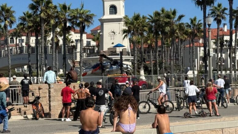 Καλιφόρνια.– Λίγο μετά τις 00:20 ώρα Ελλάδος καταγράφηκε πτώση ελικοπτέρου από δεκάδες λουόμενους και επισκέπτες έκθεσης σχετικά με αυτοκίνητα και ελικόπτερα στο Χάντιγκτον Μπιτς στην Καλιφόρνια εμφανίζοντας σημάδια βλάβης στον ουραίο έλικα και περιστρεφόμενο μέχρι την σύγκρουση.