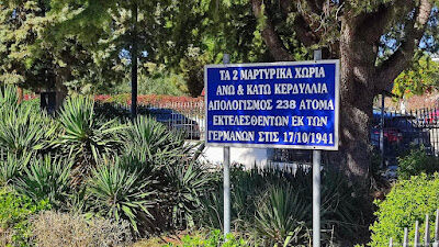 Πινακίδα στα Κερδύλλια που θυμίζει τα όσα έγιναν στο μαρτυρικό χωριό