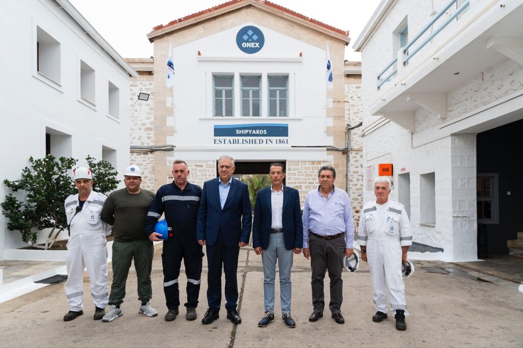 Η ανωτέρω φωτό αντλήθηκε από το facebook της ONEX NEORION SHIPYARDS και δείχνει την πρόσφατη επίσκεψη του Υπουργού κ. Θεοδωριακάκου στα ναυπηγεία