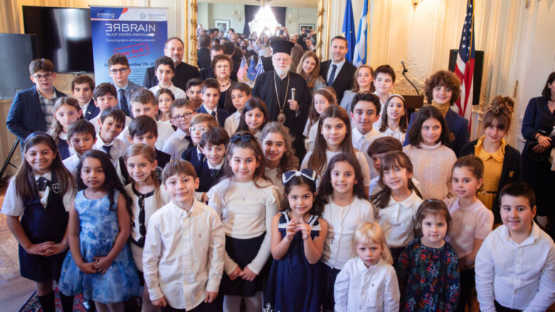 Αναμνηστική φωτογραφία από τον εορτασμό της επετείου της 28ης Οκτωβρίου στο γενικό προξενείο στη Βοστώνη. Τον Μητροπολίτη Μεθόδιο πλαισιώνουν ο γενικός πρόξενος Συμεών Τέγος, η κεντρική ομιλήτρια Αγγελική Κολοκυθά και μαθητές και μαθήτριες Ελληνικών Σχολείων. ΦΩΤΟΓΡΑΦΙΑ MARIA KECHRI PHOTOGRAPHY.