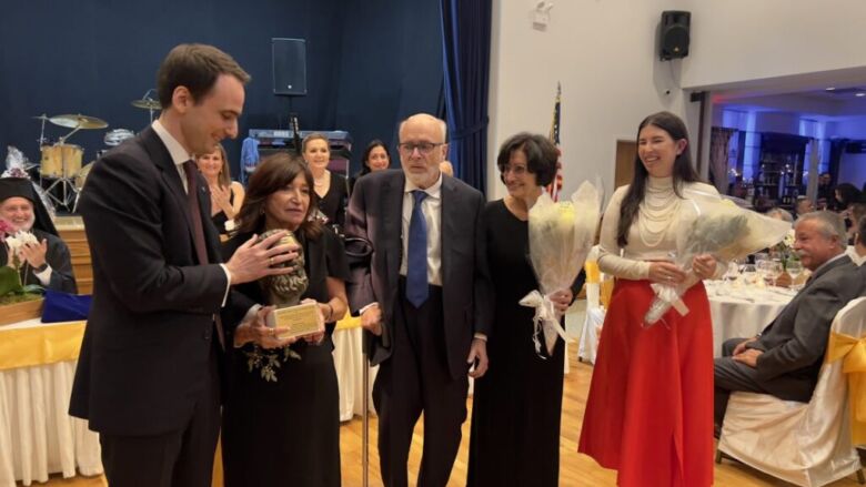 Από την απονομή του Ομηρείου Βραβείου στον Μιχάλη Κράτσιο, παρουσία της Γενικής Προξένου, Ιφιγένειας Καναρά, της Μ.Α. ΟΗΕ, Αγλαϊας Μπαλτά, του Τζον Κατσιματίδη του Νεότερου, του Αρχιεπισκόπου Αμερικής κ. Ελπιδοφόρου, της προέδρου της Χιακής Ομοσπονδίας, Κυριακής Καλογερά, των γονέων Γιάννη και Μαρίας και της συζύγου του, Αλίσα. Φωτογραφία: «ΕΘΝΙΚΟΣ ΚΗΡΥΞ»/ΧΡΙΣΤΟΔΟΥΛΟΣ ΑΘΑΝΑΣΑΤΟΣ