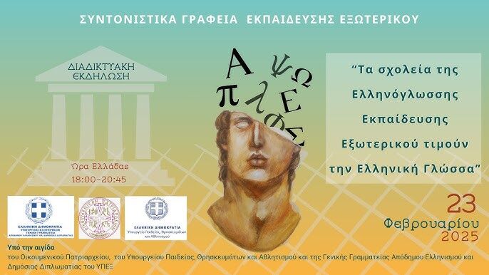 Αθήνα.- Με αφορμή την επικύρωση της απόφασης καθιέρωσης της 9ης Φεβρουαρίου ως Παγκόσμιας Ημέρας Ελληνικής Γλώσσας από την UNESCO, το ΑΠΕ-ΜΠΕ παρουσιάζει τους τρόπους παροχής ελληνόγλωσσης εκπαίδευσης στο εξωτερικό, που παρέχεται, καθοδηγείται και εποπτεύεται από το Υπουργείο Παιδείας.