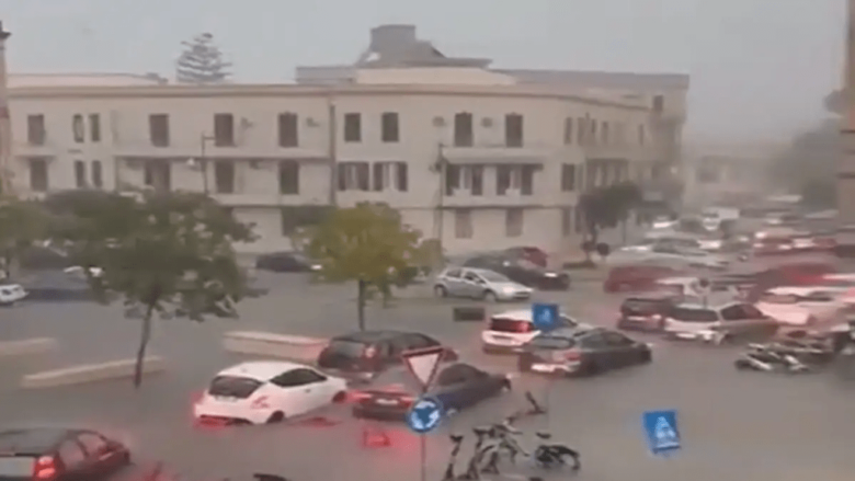 Στις Συρακούσες της Ιταλίας, τα ορμητικά νερά μετέτρεψαν τους δρόμους σε ποτάμια, με πολίτες να εγκλωβίζονται, αυτοκίνητα να ακινητοποιούνται από τις πλημμύρες και μηχανάκια να παρασύρονται.