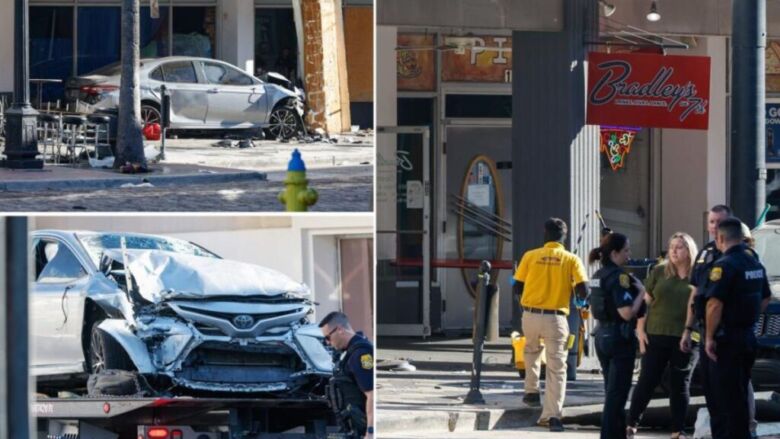 Στη συνέχεια, έχασε τον έλεγχο του οχήματος και συγκρούστηκε με ένα μπαρ με το όνομα Bradley’s, όπου χτύπησε περισσότερους από δώδεκα ανθρώπους που είχαν συγκεντρωθεί στην αυλή, σύμφωνα με την αστυνομία.