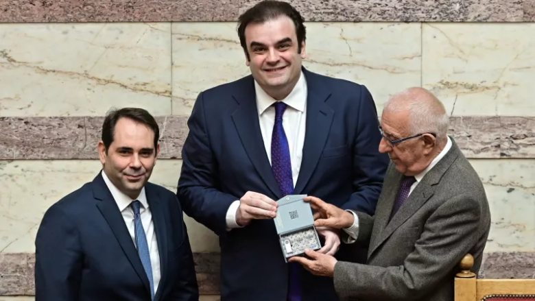 «Ο οικονομικός προϋπολογισμός του 2026 υποβάλλεται φέτος για πρώτη φορά και σε πλήρως άυλη μορφή με QR code στο Cloud και από του χρόνου το USB καταργείται», τόνισε ο κ. Πιερρακάκης, παραδίδοντας το «πατροπαράδοτο στικάκι» στο Πρόεδρο της Βουλής.