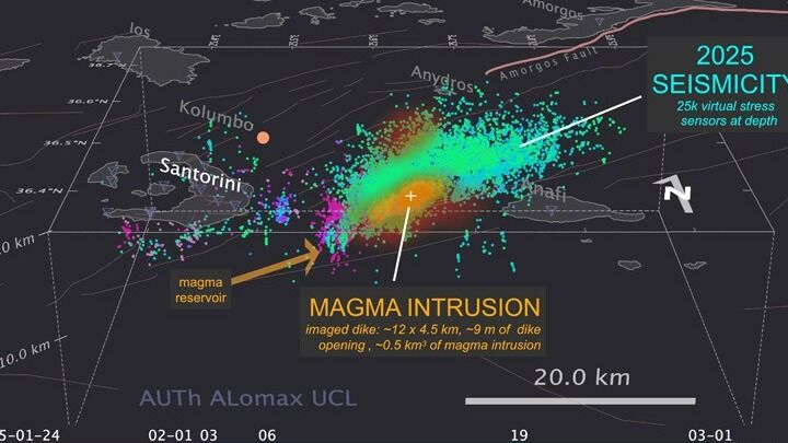 Διεθνής ομάδα ερευνητών, ανάμεσα τους και Έλληνες, αποκάλυψε τις κρυφές διεργασίες που οδήγησαν στην ιδιαίτερα ενεργή σεισμική δραστηριότητα κοντά στη Σαντορίνη στις αρχές του 2025.
