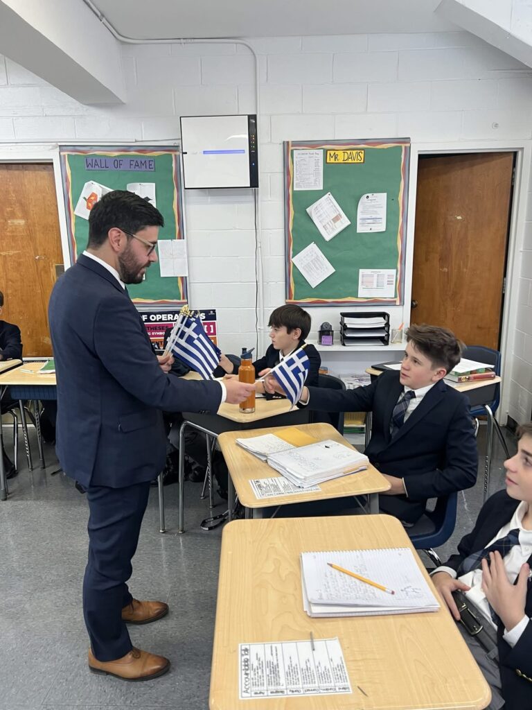 Το αποκορύφωμα της επίσκεψης του Προξένου υπήρξε η συνάντησή του με τους μαθητές της 8ης τάξης. Ο κ. Δώριζας είχε την ευκαιρία να έρθει σε επαφή με τη νέα γενιά των Ελληνοαμερικανών, οι οποίοι σύντομα θα αποτελέσουν τους φορείς του Ελληνισμού στις Ηνωμένες Πολιτείες.