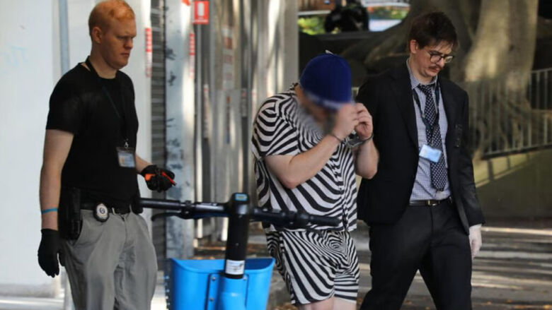 Το βίντεο έδειχνε ένοπλους αστυνομικούς να εισβάλλουν στην διεύθυνση στο Waterloo και να συνοδεύουν τον 26χρονο άνδρα, ντυμένο με ένα μαύρο και άσπρο ριγέ πουκάμισο και σορτς και με ένα μπλε σκούφο τραβηγμένο πάνω από τα μάτια του, έξω από το ακίνητο στο Waterloo.