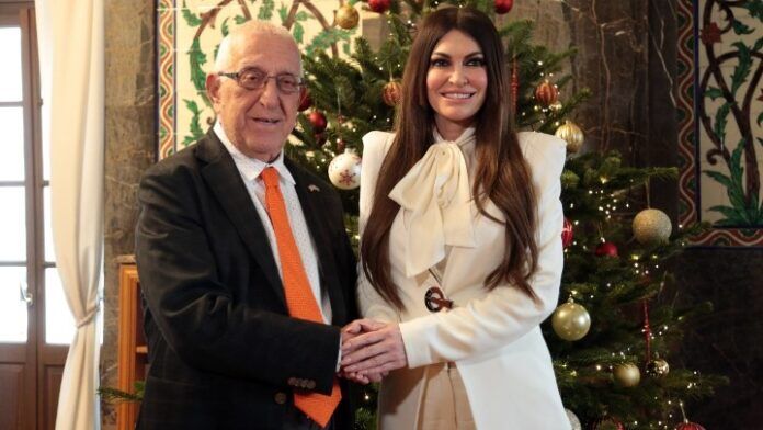 Ο πρόεδρος της Βουλής των Ελλήνων, Νικήτας Κακλαμάνης και η πρέσβειρα των ΗΠΑ στην Αθήνα, Κίμπερλι Γκιλφόιλ. Φωτογραφία: ΑΠΕ – ΜΠΕ.