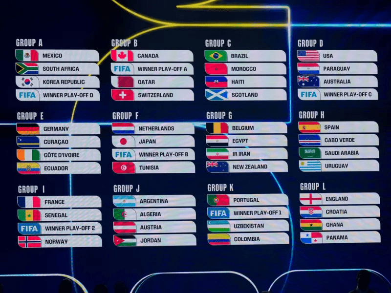 Η κλήρωση, που χαρακτηρίστηκε από ιδιαίτερα σύνθετες διαδικασίες λόγω γεωγραφικών περιορισμών, έφερε στους Αμερικανούς ένα ονειρικό γκρουπ με Παραγουάη, Αυστραλία και νικητή playoff, ενώ ο Καναδάς είχε πιο «βαριά» κλήρωση με πιθανή αντίπαλο την Ιταλία, συν Ελβετία και Κατάρ.