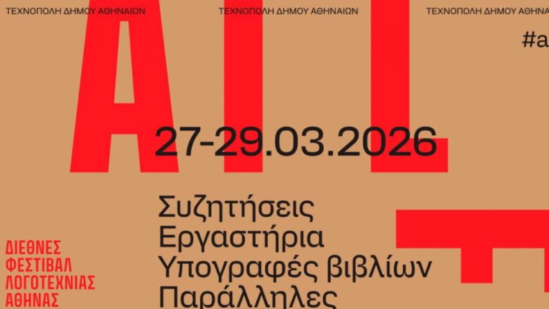 Ο Δήμος Αθηναίων διοργανώνει το 1ο Διεθνές Φεστιβάλ Λογοτεχνίας της Αθήνας το διάστημα 27 – 29 Μαρτίου 2026, στην Τεχνόπολη Δήμου Αθηναίων, με ελεύθερη είσοδο για το κοινό
