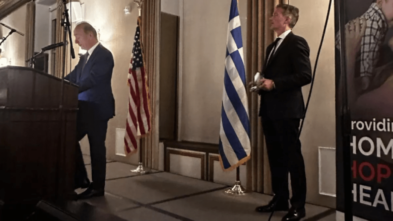 Στη συνέχεια, η Δρ. Ρουθ C. Browne και ο Σπύρος Μαλιαγρός παρουσίασαν τον φετινό τιμώμενο του Χριστουγεννιάτικου Δείπνου, Τζον Καλαφάτη, Ιδρυτή και Πρόεδρο του Skyline Charitable Foundation.