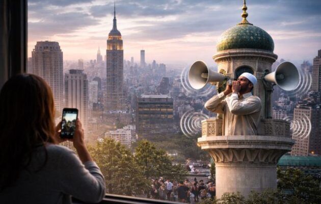 Στη Νέα Υόρκη, μετά την εκλογή νέου δημάρχου, ο Μουεζίνης καλεί από τα μεγάφωνα σε προσευχή
