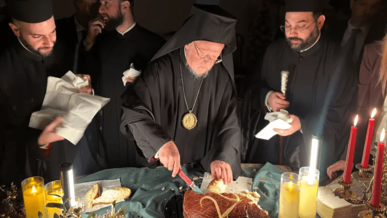 «Κακός οιωνός» σχολίασε ο Οικουμενικός Πατριάρχης πριν να ολοκληρώσει την κοπή της πίτας.