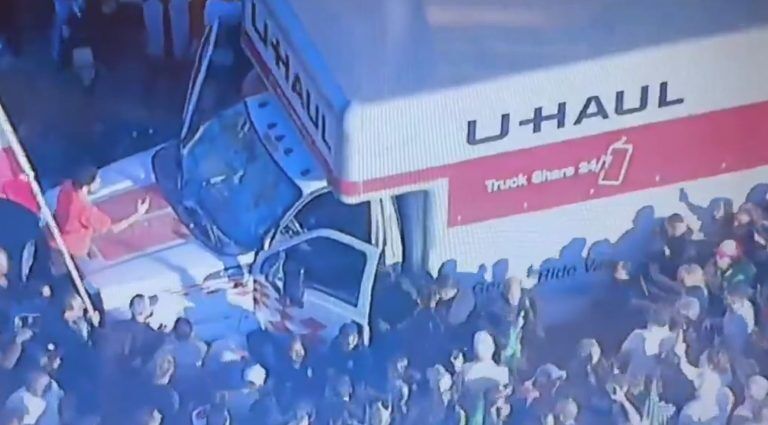 Βίντεο που ήρθαν στο φως δείχνουν ένα φορτηγό να προσπαθεί να διασχίσει το πλήθος των διαδηλωτών, ενώ κάποιοι από αυτούς χτυπούσαν το όχημα με τα χέρια και τις σημαίες τους. Λίγο αργότερα, ο οδηγός φαίνεται να επιταχύνει και να περνά μέσα από το υπόλοιπο τμήμα της συγκέντρωσης.