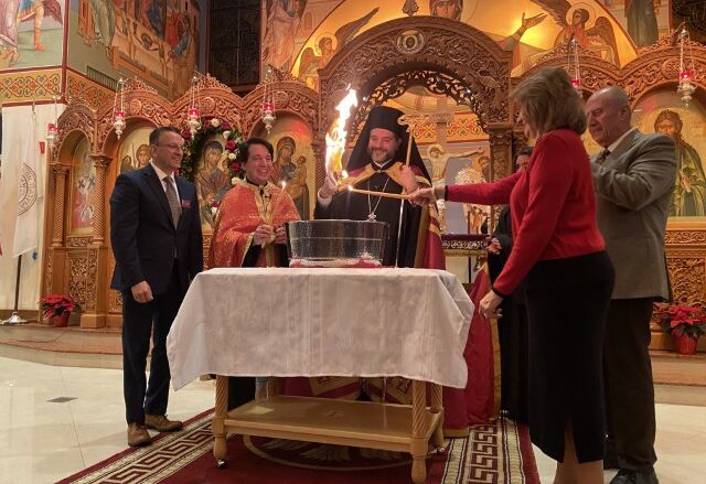 Flemington, NJ: St. Anna Greek Orthodox Church, Flemington, NJ celebrated the burning of its church mortgage after its Hierarchical Feast Day Vespers, December 8, 2025. This milestone was the first goal on the parish’s “Path to Consecration”.