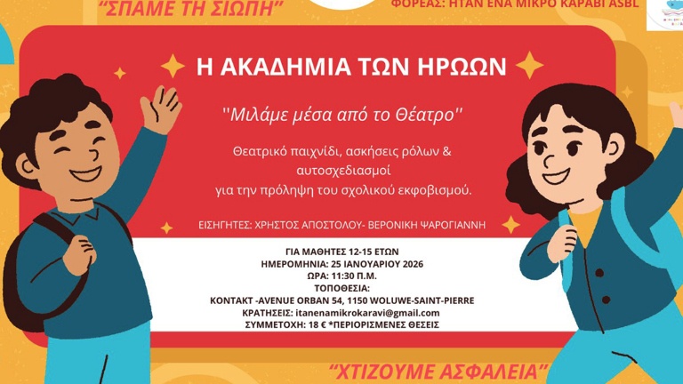 Βρυξέλλες: «Η Ακαδημία των Ηρώων» – Μια καλλιτεχνική δράση για εφήβους με στόχο την πρόληψη του σχολικού εκφοβισμού
