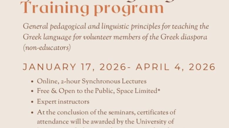 Και η επιστημονικώς υπεύθυνη του προγράμματος προσθέτει: «Έμφαση δίνεται στη διερεύνηση μεθοδολογικών αρχών και παιδαγωγικών πρακτικών που προάγουν την ενεργό συμμετοχή του μαθητή και ενισχύουν την αυτονομία του στη μάθηση. Στο πλαίσιο αυτό, θα εξεταστεί η σημασία της γλωσσικής ποικιλότητας, η διαμόρφωση υποστηρικτικών μαθησιακών περιβαλλόντων, καθώς και η ενσωμάτωση ψηφιακών τεχνολογιών και τεχνητής νοημοσύνης. Στο πρόγραμμα, η σύνδεση της γλώσσας με πολιτισμικές πρακτικές –όπως η ποίηση, η μουσική και η λογοτεχνία– έχει διττό στόχο: αφενός την καλλιέργεια της γλωσσικής ικανότητας και της δημιουργικής σκέψης, αφετέρου την ενίσχυση της πολιτισμικής ταυτότητας των παιδιών της ομογένειας. Το παιδί προσεγγίζεται ως ενεργός συμμετέχων στη μαθησιακή διαδικασία, με το πρόγραμμα να στοχεύει στην ανάπτυξη κοινωνικών δεξιοτήτων και κριτικής σκέψης».