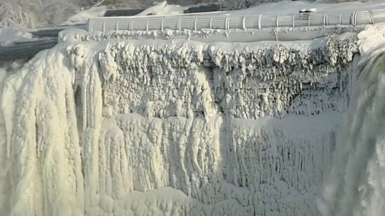 Με το χιόνι και το κρύο που επικρατεί στο νότιο Οντάριο, η Niagara Parks αναφέρει ότι οι καταρράκτες έχουν παγώσει εν μέρει, δημιουργώντας «εκθαμβωτικές» παγωμένες σχηματισμούς και μια «παγωμένη ομίχλη».