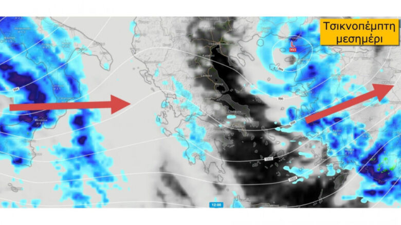 Ο κ. Κολυδάς σημειώνει ότι την Τσικνοπέμπτη θα υπάρχει ένα διάστημα σχετικής βελτίωσης μεταξύ του ενός συστήματος που απομακρύνεται από το Ανατολικό Αιγαίο και του άλλου που έρχεται προς το βράδυ από τα Δυτικά.