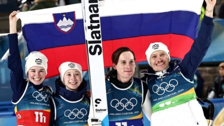 Η Σλοβενία κατέκτησε το χρυσό μετάλλιο στο μεικτό ομαδικό του σκι άλματος στους Χειμερινούς Ολυμπιακούς Αγώνες του Μιλάνου-Κορτίνα, με ηγέτες τα αδέρφια Νίκα και Ντόμεν Πρεβτς.