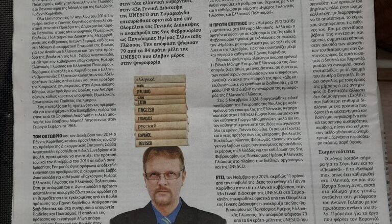 Εφημερίδα των Συντακτών – Άρθρο Μαλασπίνα – Η καθιέρωση “Ημέρας Ελληνικής Γλώσσας” και μία αδικία