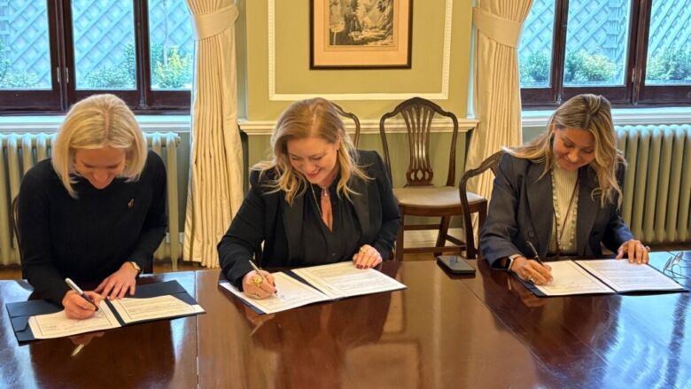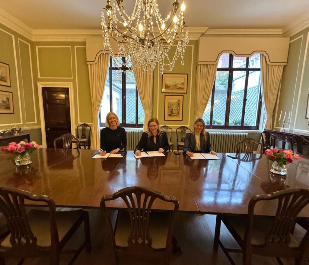 Λονδίνο.- Μνημόνιο συνεργασίας υπέγραψαν στην Πρεσβευτική Κατοικία στο Λονδίνο, στις 16 Οκτωβρίου 2025, η Γενική Γραμματέας Απόδημου Ελληνισμού και Δημόσιας Διπλωματίας κυρία Μάιρα Μυρογιάννη και η Πρόεδρος της Ομάδας Εργασίας (Task Force) Crafting Greece κυρία Δήμητρα Κολοτούρα, με την Αναπληρώτρια Διευθύντρια του King’s Foundation κ. Emily Cherrington.