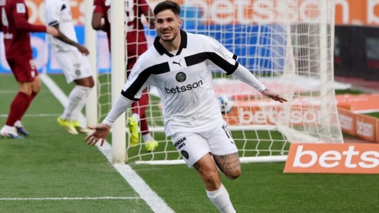Ο Κωστούλας πήρε μέτρα από τα δεξιά, πάτησε περιοχή και άφησε στον Σενγκέλια. Ο Γεωργιανός γύρισε το σώμα του, τροφοδότησε τον Φούντα, ο οποίος ερχόταν από πίσω, πέρασε ανάμεσα από την άμυνα των βυσσινί και πλάσαρε για το 2-0 στο 7ο λεπτό.