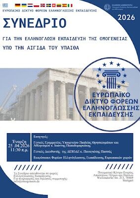 Στουτγάρδη: Το Ευρωπαϊκό Δίκτυο Φορέων Ελληνόγλωσσης Εκπαίδευσης διοργανώνει Συνέδριο με τη συμμετοχή εκπροσώπων από ευρωπαϊκές χώρες, με στόχο “την ενίσχυση της συνεργασίας και του συντονισμού για την ελληνόγλωσση εκπαίδευση της Ομογένειας”.