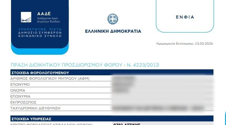 Από ώρα σε ώρα αναρτώνται τα εκκαθαριστικά ΕΝΦΙΑ 2026, με συνολικό λογαριασμό 2,3 δισεκατομμύρια ευρώ και πληρωμή σε 12 μηνιαίες δόσεις από τον Μάρτιο 2026 έως τον Φεβρουάριο 2027.