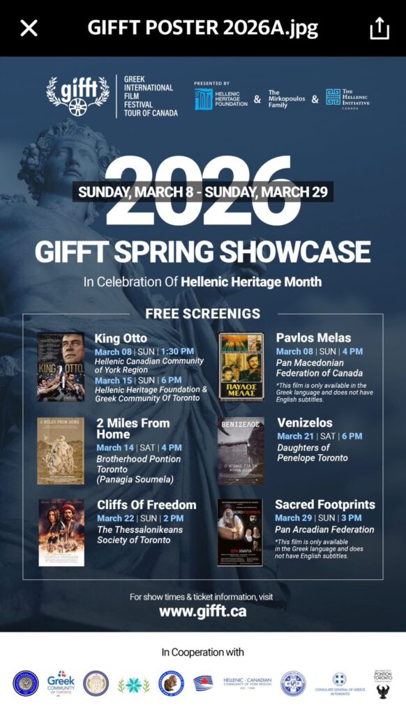 Greek International Film Festival Tour of Canada: Στρατηγική πολιτιστική πλατφόρμα για τους Ελληνοκαναδούς 2ης & 3ης γενιάς
