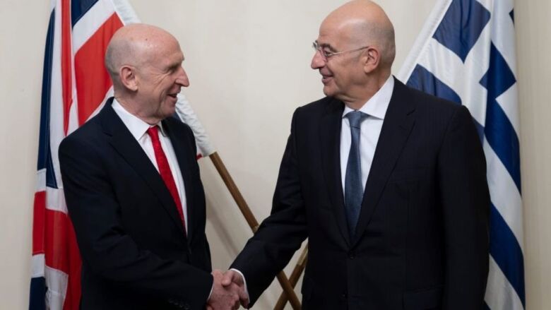 Στο πλαίσιο της επίσκεψής του στο Ηνωμένο Βασίλειο, ο κ. Δένδιας συναντήθηκε χθες, Δευτέρα 16 Μαρτίου 2026, με τον Σύμβουλο Εθνικής Ασφάλειας του Ηνωμένου Βασιλείου, Jonathan Powell, με τον οποίο συζήτησε για τη γεωπολιτική κατάσταση στη Μέση Ανατολή, το Ιράν, την Ουκρανία, καθώς και για τις ευρύτερες απειλές ασφαλείας.