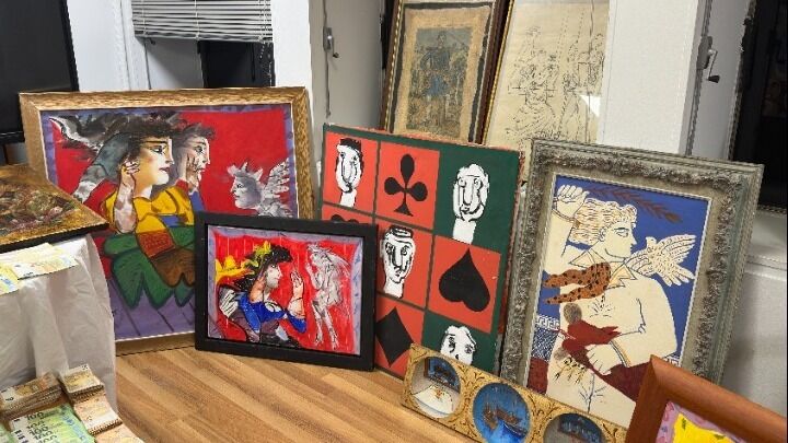 Όπως επισημαίνεται από την ΕΛΑΣ κατά τη συντονισμένη αστυνομική επιχείρηση της Διεύθυνσης Αντιμετώπισης Οργανωμένου Εγκλήματος, που πραγματοποιήθηκε την Παρασκευή 20 Μαρτίου, κατασχέθηκαν 321 έργα τέχνης, τέσσερις ξύλινες αρχαίες ιερές εικόνες, Ευαγγέλιο, τρεις αρχαίοι αμφορείς, αντικείμενα βυζαντινής περιόδου, μεγάλα χρηματικά ποσά, όπλο, φυσίγγια και ψηφιακά πειστήρια.