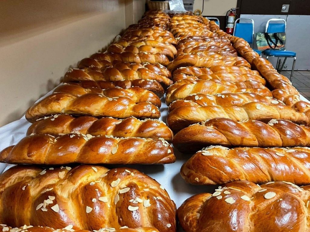 Η κουζίνα του Ελληνικού κοινοτικού Κέντρου μύρισε μαχλέπι και μαστίχα και οι χρυσοχέρες κυρίες, αλλά και οι κύριοι, της Ομογένειας, πάντα με μεράκι και καλή διάθεση, κράτησαν ζωντανά τα έθιμα και τις παραδόσεις της ιδιαίτερης πατρίδας, μεταλαμπαδεύοντας τα και στις νέες γενιές. Πολλά από αυτά τα τσουρέκια θα διανεμηθούν μάλιστα σε τοπικά γηροκομεία, με την ευχή για Καλό Πάσχα. Οι φωτογραφίες είναι της Lizette Pappas, προέδρου της Φιλοπτώχου.