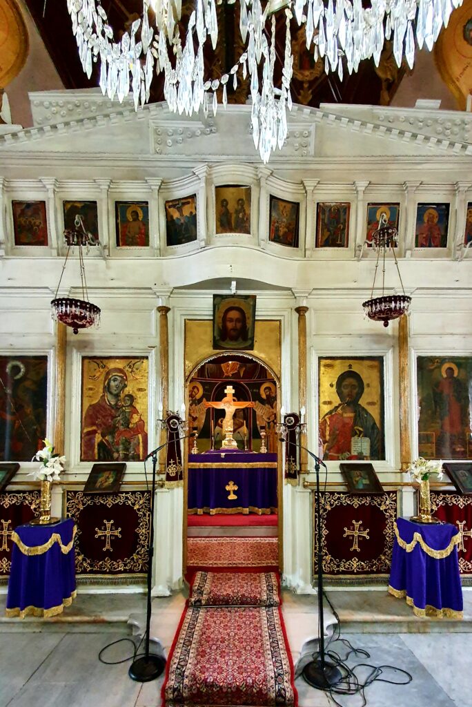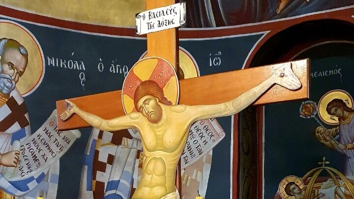 Απόψε, δεκάδες πιστοί θα περάσουν κάτω από την είσοδο του επιβλητικού καμπαναριού για να εισέλθουν στον καλαίσθητο ναό και να παρακολουθήσουν την ακολουθία των Αγίων Παθών. Με κατάνυξη και ευλάβεια θα σταθούν μπροστά στον Εσταυρωμένο Χριστό, έργο που φέρει την υπογραφή του μεγάλου Έλληνα αγιογράφου και λογοτέχνη, Φώτη Κόντογλου.