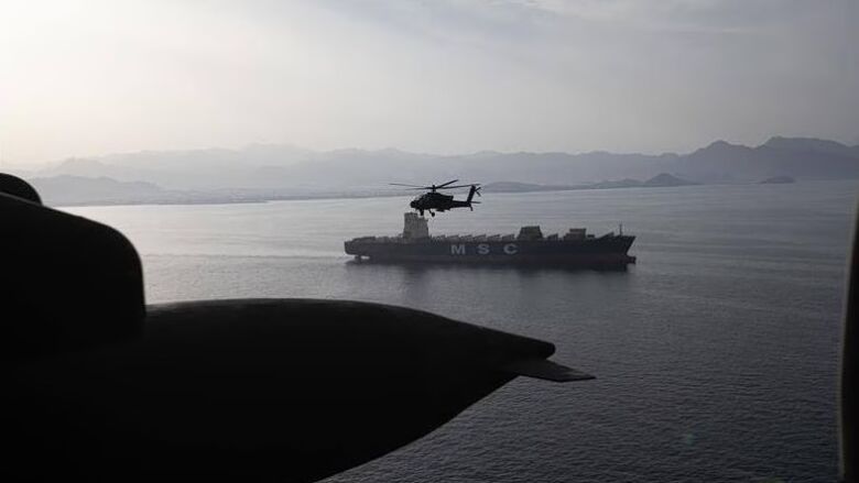 «Πεζοναύτες των ΗΠΑ αποχωρούν με ελικόπτερο από το αμφίβιο πλοίο επίθεσης USS Tripoli (LHA 7) και διασχίζουν την Αραβική Θάλασσα για να επιβιβαστούν και να καταλάβουν το M/V Touska.
