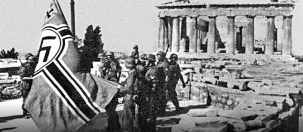 Την 6η Απριλίου 1941 τα γερμανικά στρατεύματα εισέβαλαν στην Ελλάδα. Οι λιγοστές στρατιωτικές δυνάμεις που υπερασπίζονταν τα μακεδονικά οχυρά στα ελληνοβουλγαρικά σύνορα περικυκλώθηκαν και, έπειτα από ηρωική αντίσταση, αναγκάστηκαν να υποκύψουν. Την 24η Απριλίου ο στρατηγός Τσολάκογλου συνθηκολόγησε με τους εισβολείς. Οι Γερμανοί, μόλις εισήλθαν στην Αθήνα (27 Απριλίου), όρισαν «κυβέρνηση Κουίσλινγκ» κι έτσι άρχισε η κατοχή.