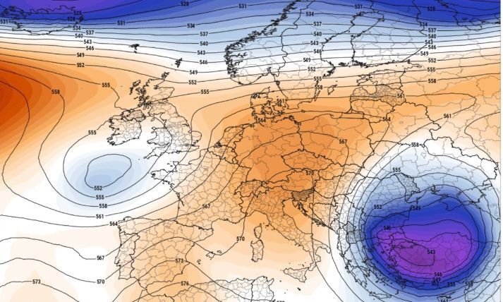 Σε αυτό το σκηνικό, σχηματίζεται ένας κλασικός Ωμέγα εμποδιστής πάνω από τη Γροιλανδία και τον Βόρειο Ατλαντικό, ο οποίος λειτουργεί σαν «φράγμα»: μπλοκάρει τη δυτική ροή και διοχετεύει διαρκώς ψυχρές αέριες μάζες προς την καρδιά της Ευρώπης.