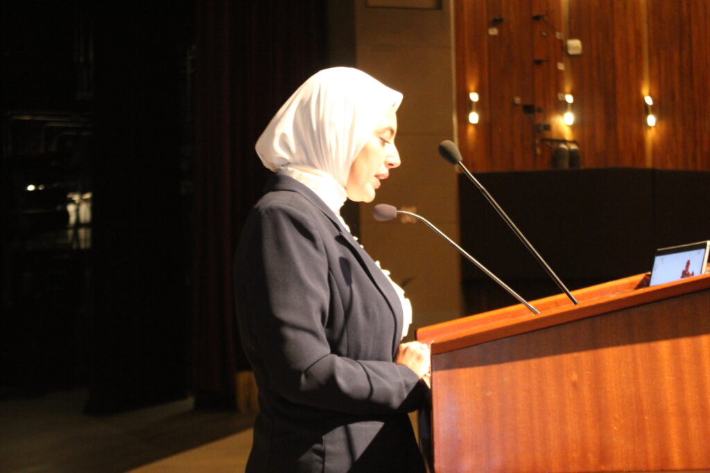 Επιβεβαίωσε ότι με τη φιλοξενία της Βιβλιοθήκης Αλεξανδρείας, όντας μέρος αυτής της εορταστικής γιορτής, επιβεβαιώνει τη δέσμευσή της να αποκαταστήσει αυτόν τον ρόλο της διαφωτισμού, ώστε η Αλεξάνδρεια να παραμείνει όπως ήταν πάντα το επίκεντρο της παραγωγής γνώσης, του διαλόγου μεταξύ πολιτισμών και το είδωλο σύγκλισης διανοητικών οριζόντων. Επίσης να είναι μια διαρκής αναζήτηση ανοχής, αδελφοσύνης, αγάπης και ειρήνης ώστε να συνεχίσει να αποτελεί το κέντρο από το οποίο εκπέμπονται οι ακτίνες του διαφωτισμού και οι εκφάνσεις της ομορφιάς.